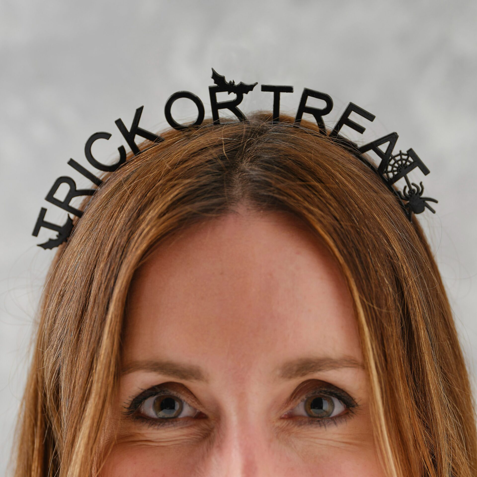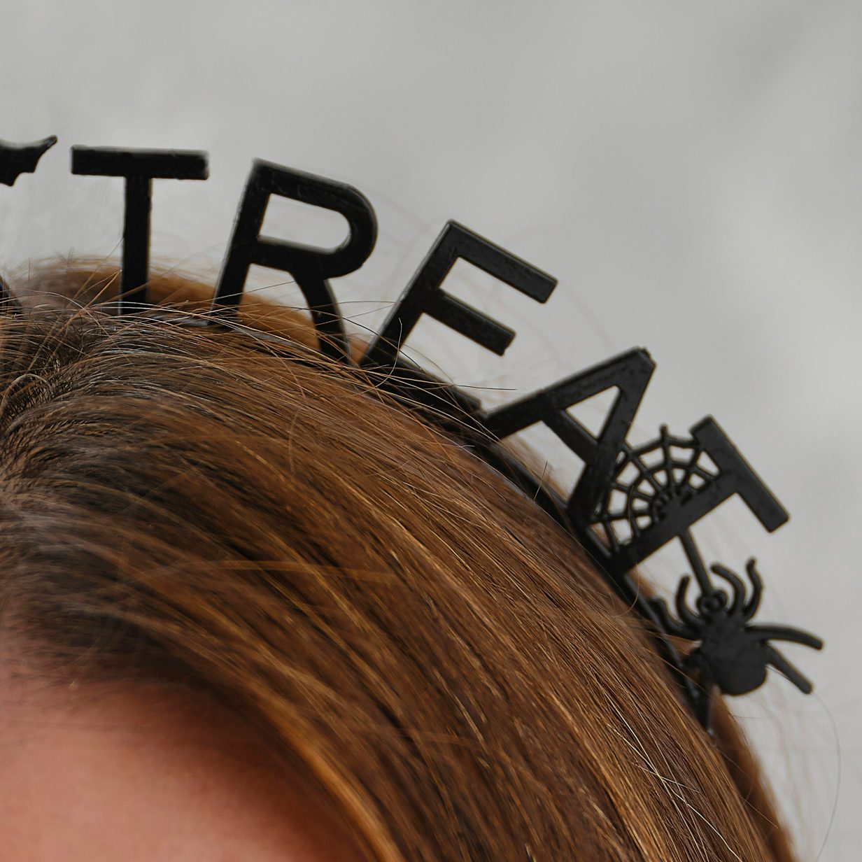 Η φράση “Trick or Treat” ακολουθεί το κλασικό μοτίβο του Halloween, προσδίδοντας στο αξεσουάρ έντονο χαρακτήρα, ενώ οι προσθήκες των νυχτερίδων και της αράχνης ενισχύουν το spooky ύφος. Η στέκα αυτή ταιριάζει με διάφορες θεματικές στολές, ειδικά αν έχεις και άλλα αξεσουάρ με θέμα “μυστήριο / σκοτάδι / νύχτα”.
