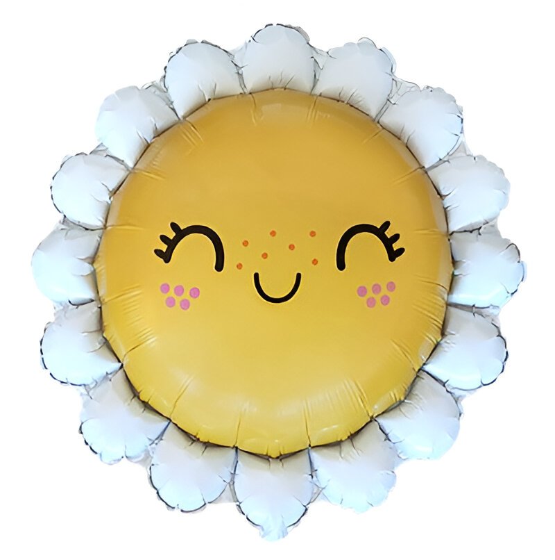Μπαλόνι χαμογελαστή μαργαρίτα με ροζ μαγουλάκια, ιδανικό για χαρούμενη διακόσμηση πάρτι.