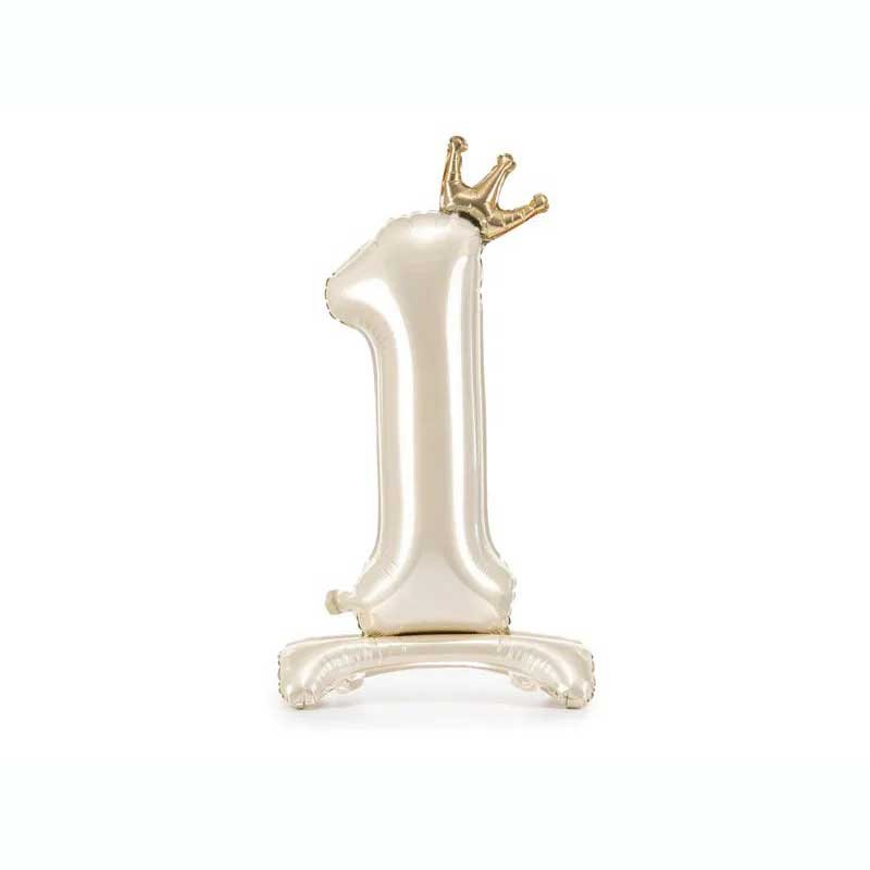 Μπαλόνι Αριθμός 1 Κρεμ Με Στέμμα Και Βάση