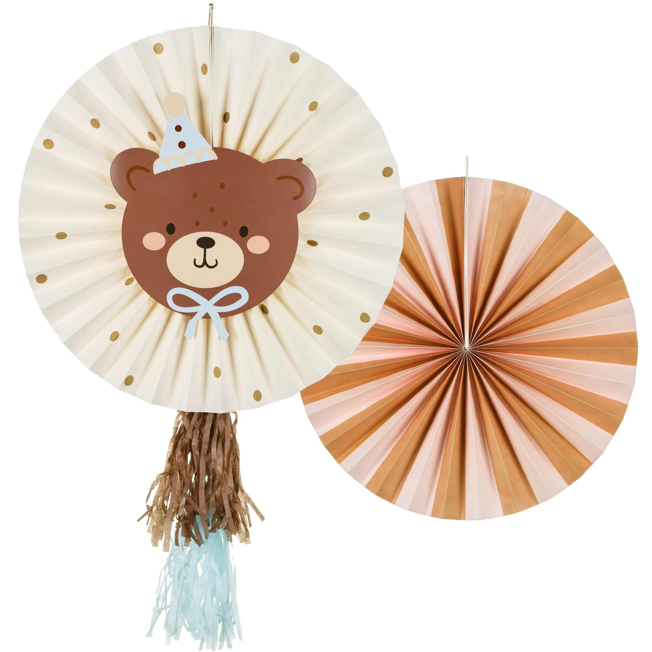 Σετ διακοσμητικές βεντάλιες με σχέδιο αρκουδάκι ιδανικές για θεματικό στολισμό παιδικών πάρτι ή baby shower.