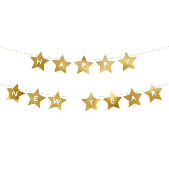 Η γιρλάντα με αστέρια Happy New Year είναι το διακοσμητικό που χρειάζεστε για να δώσετε στο χώρο σας χριστουγεννιάτικη/πρωτοχρονιάτικη λάμψη και ατμόσφαιρα. Με εντυπωσιακά χρυσά αστέρια κρεμασμένα κατά μήκος, προσφέρει κομψό και γιορτινό look ιδανικό για ρεβεγιόν, πάρτι, gatherings με φίλους ή οικογένεια.