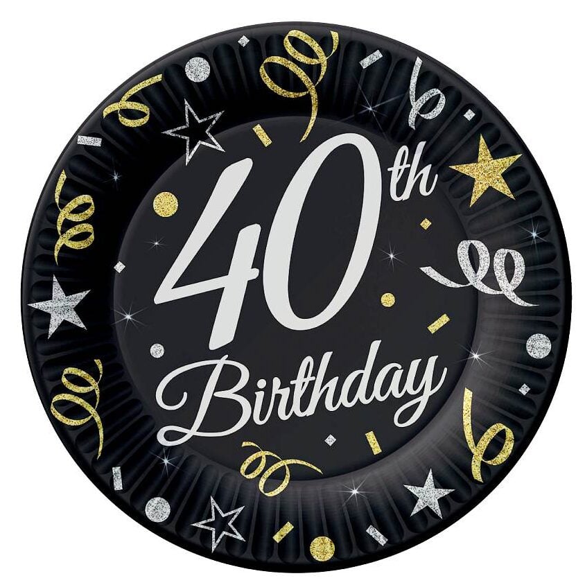 Δώστε λάμψη στο τραπέζι του πάρτι σας με αυτά τα εντυπωσιακά χάρτινα πιάτα “40th Birthday”!