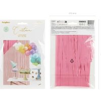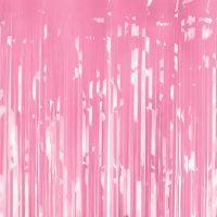 Μεταλλική κουρτίνα διακόσμησης σε ροζ χρώμα, με ταινίες foil που αντανακλούν το φως. Ιδανική για φόντο τούρτας, photobooth ή είσοδο σε glam πάρτι.