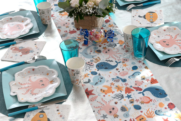 Runner τραπεζιού με θέμα “Little Sailor” ναυτικά μοτίβα, ιδανικός για στολισμό τραπεζιού σε βαπτίσεις ή πάρτι με θέμα θάλασσα, ναυτικό.