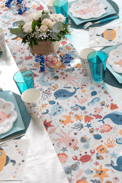 Είναι αρκετά μακρύ ώστε να καλύπτει όλη την επιφάνεια του τραπεζιού ή να κόβεται σε μικρότερα κομμάτια για στολισμό πολλών τραπεζιών. Το σχέδιο “Little Sailor” δίνει nautical / baby‑boy αίσθηση, και ταιριάζει υπέροχα με ποτήρια, πιάτα και άλλα αξεσουάρ με θέμα «ναυτικό» ή «θαλασσινό πάρτι». Εύκολο στο στήσιμο και καθάρισμα, προσφέρει πρακτικότητα και αισθητική.