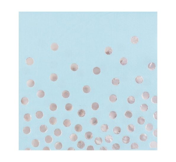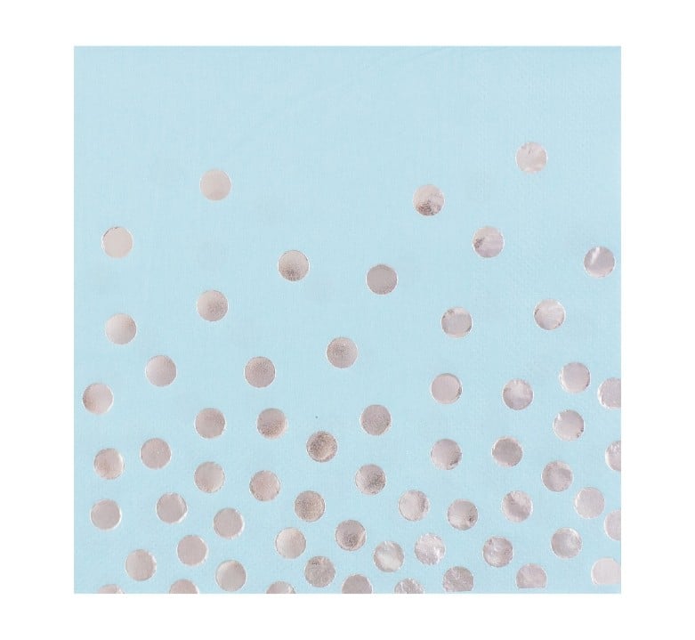 Χαρτοπετσέτες γαλάζιου χρώματος με ασημί πουά. Ιδανικές για βάπτιση, πάρτι αγοριών ή εκδήλωση με λευκό-γαλάζιο θέμα.