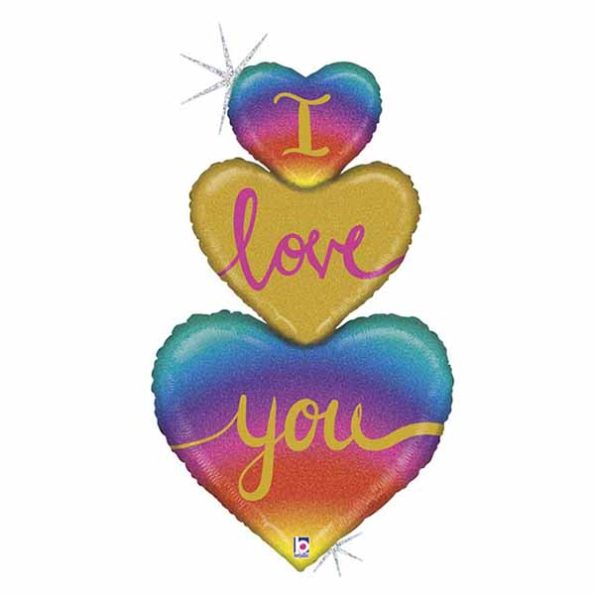 Μπαλόνι Ουράνιο Τόξο με Glitterκαι Καρδιές – 101 cm