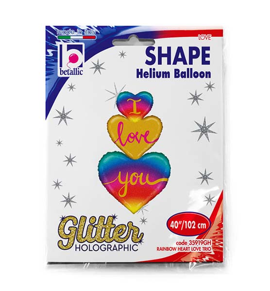 Μπαλόνι καρδιές ουράνιο τόξο με γκλίτερ.