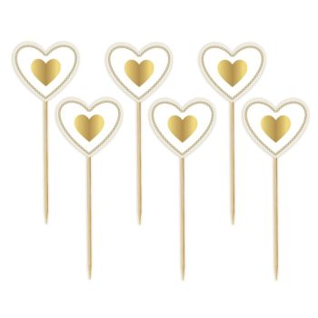 Διακοσμητικές οδοντογλυφίδες σε σχήμα καρδιάς σε άσπρο & χρυσό