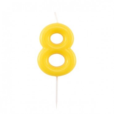 Το κεράκι αριθμός “8” σε έντονο κίτρινο χρώμα είναι η ιδανική επιλογή για να διακοσμήσετε την τούρτα γενεθλίων με στυλ και χαρούμενη διάθεση.