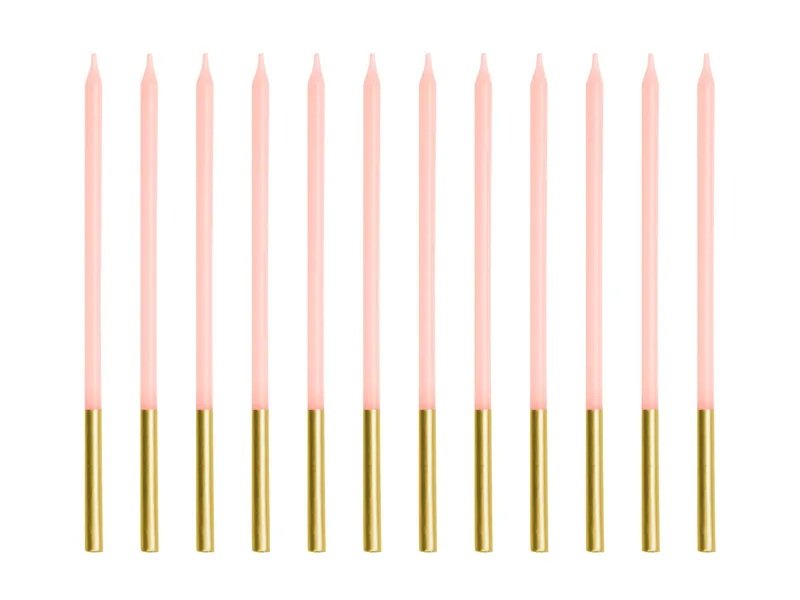 Δώστε μια απαλή, γλυκιά και elegant νότα στην τούρτα σας με αυτά τα ψηλά ροζ κεράκια συνοδευόμενα από ένα λαμπερό χρυσό τελείωμα. Η pastel ροζ απόχρωση τους ταιριάζει τέλεια σε γενέθλια παιδιών και ενηλίκων, baby showers, βάπτιση ή οποιαδήποτε celebration με φιλική, χαριτωμένη αισθητική.