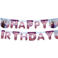 Γιρλάντα Frozen Happy Birthday, ιδανική για να διακοσμήσετε το παιδικό πάρτι με θέμα την Έλσα και την Άννα!