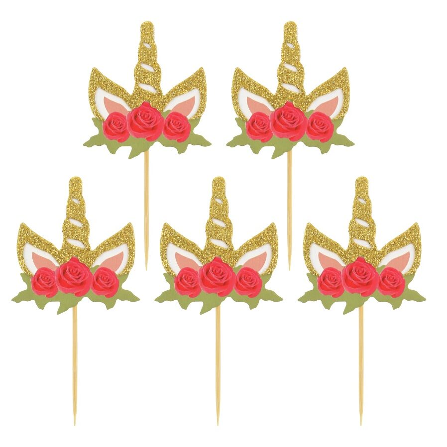 Μεταμορφώστε το πάρτι σας με τις μαγευτικές οδοντογλυφίδες Μονόκερος! Αυτά τα εντυπωσιακά toppers με χρυσό γκλίτερ και λουλούδια θα προσθέσουν μια πινελιά παραμυθένιας ομορφιάς στην τούρτα και τα εδέσματά σας. Ιδανικά για βαπτίσεις και παιδικά πάρτι, αυτά τα 6 κομψά διακοσμητικά (4,5 x 4,5 cm) θα απογειώσουν το εορταστικό στυλ της εκδήλωσής σας. Αναβαθμίστε τη διακόσμηση του πάρτι σας σήμερα!