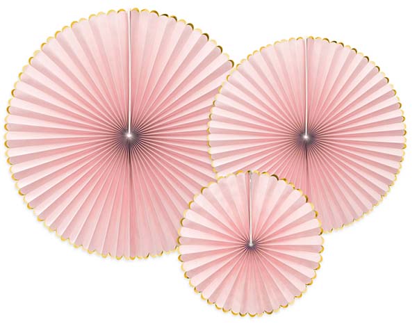 Σετ 3 χάρτινες βεντάλιες ανοιχτό ροζ με χρυσό περίγραμμα.