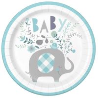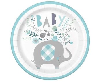 Χάρτινα πιάτα φαγητού με θέμα ελεφαντάκι, ιδανικά για baby shower, βάπτιση ή τα πρώτα γενέθλια.