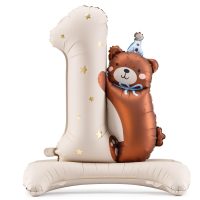 Μπαλόνι αριθμός 1 με φιγούρα αρκουδάκι και βάση ιδανικό για πρώτα γενέθλια και διακόσμηση πάρτι.