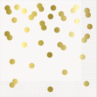 Χαρτοπετσέτες σε λευκό χρώμα με χρυσές foil κουκίδες, ιδανικές για glam τραπέζι ή elegant πάρτι.