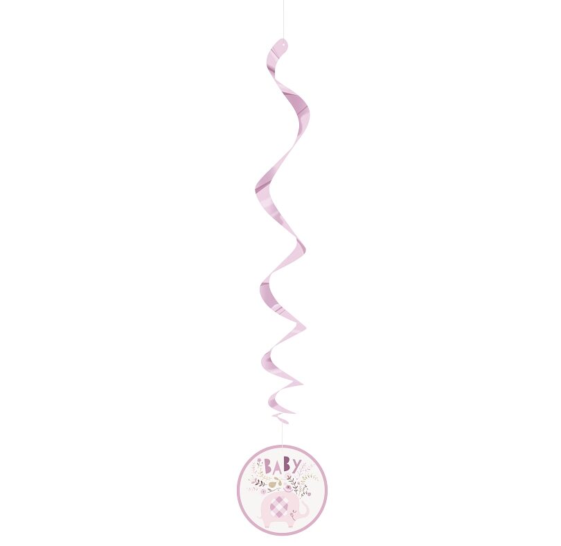 Ροζ swirl διακοσμητικά οροφής με ελεφαντάκι, ιδανικά για baby shower, βάπτιση και παιδικό πάρτι.