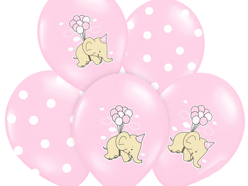 Ροζ μπαλόνια latex με ελεφαντάκι, ιδανικά για baby shower, βάπτιση και παιδικά πάρτι.