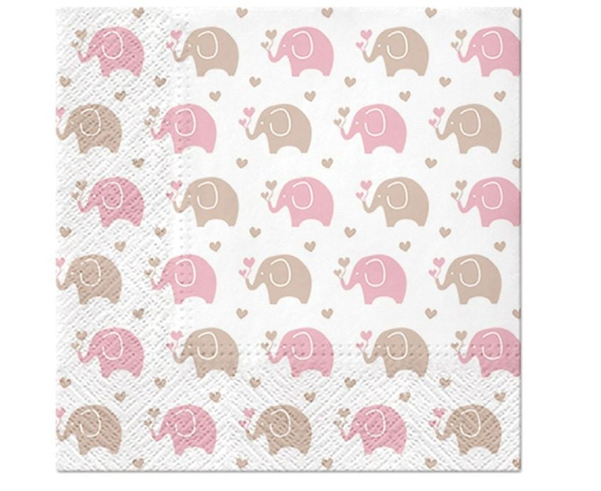 Χαρτοπετσέτες με ροζ ελεφαντάκια, ιδανικές για baby shower, βάπτιση και παιδικά πάρτι.