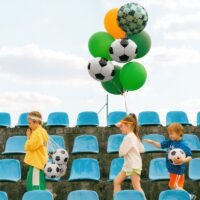 Πράσινο μπαλόνι Happy Birthday με μπάλες ποδοσφαίρου.