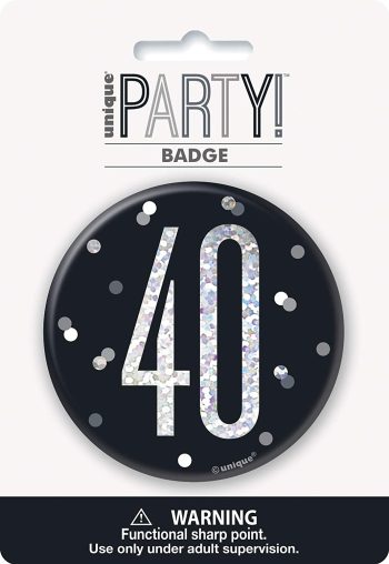 Κονκάρδα “40” σε μαύρο φόντο με ασημί γκλίτερ, το απόλυτο αξεσουάρ για glam 40α γενέθλια και εντυπωσιακή birthday εμφάνιση!