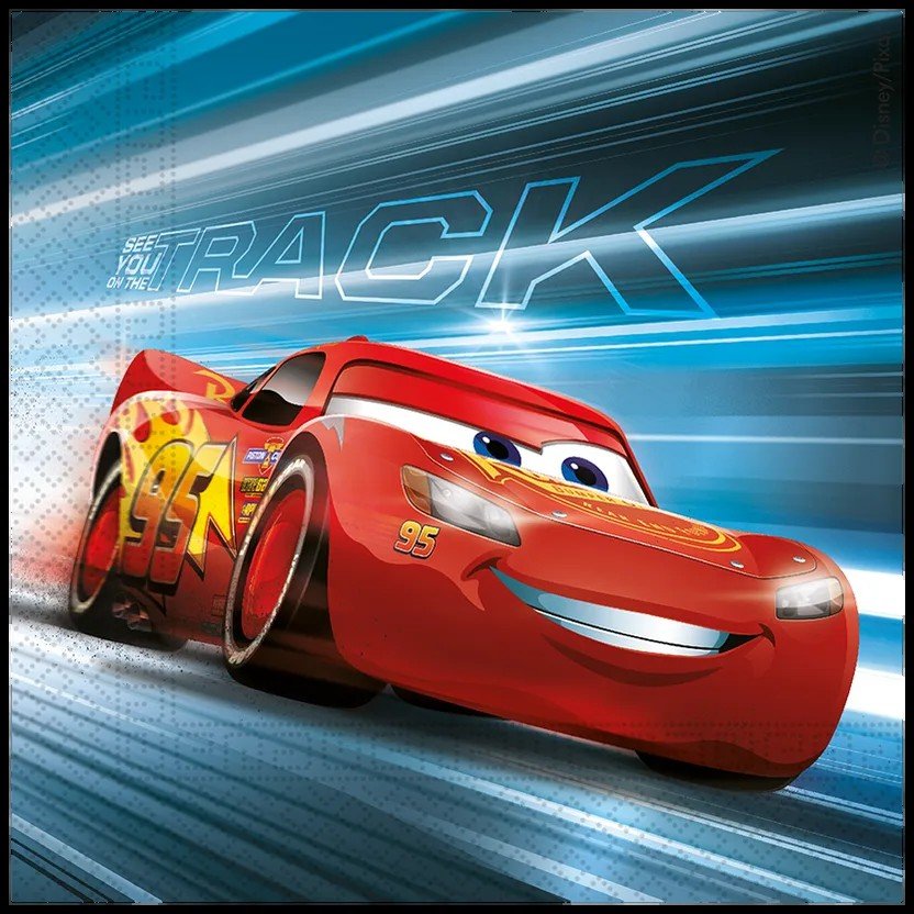 Χαρτοπετσέτες Cars με τον Lightning McQueen, ιδανικές για παιδικά πάρτι και θεματική διακόσμηση.