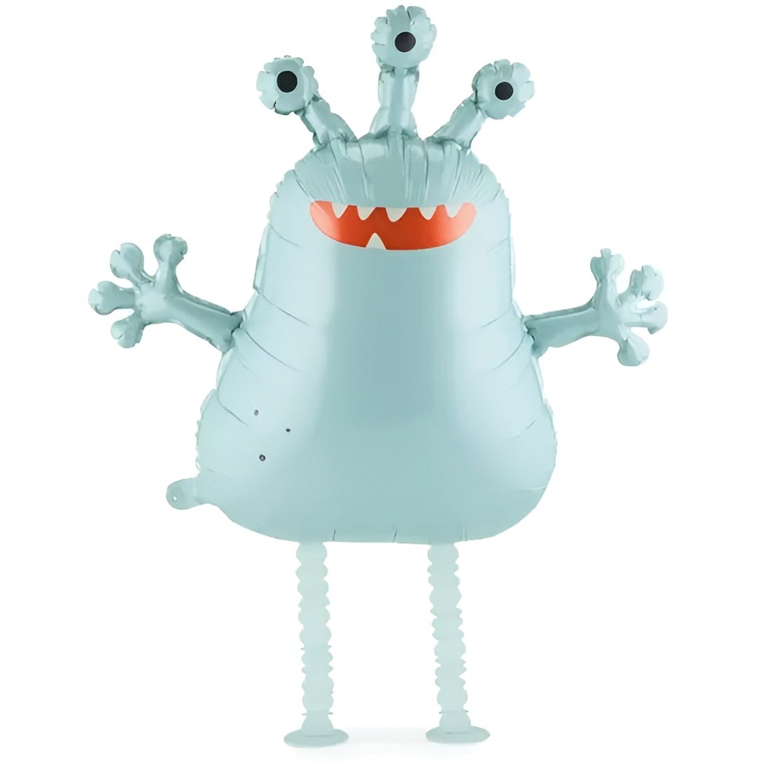 Walking μπαλόνι γαλάζιος εξωγήινος που “περπατά”, ιδανικό για παιδικά πάρτι και θεματική διακόσμηση.