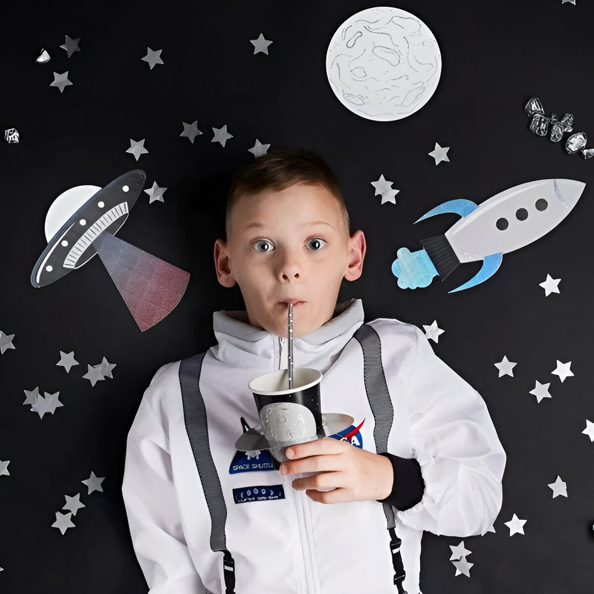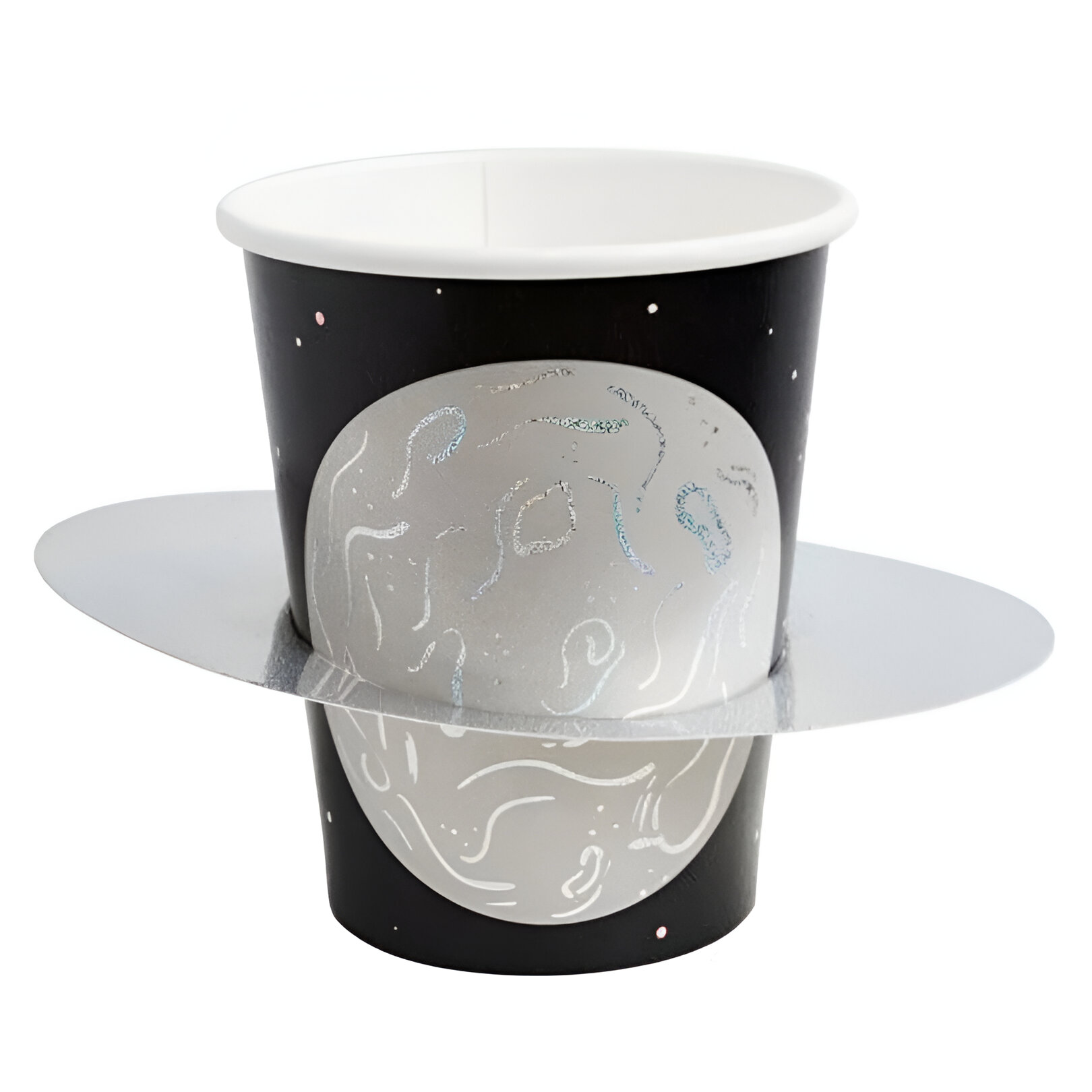 Χάρτινα ποτήρια πάρτυ με σχέδιο πλανήτη, ιδανικά για space party και θεματική διακόσμηση τραπεζιού.