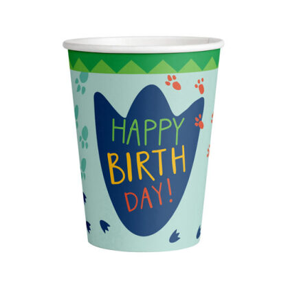 Τα ποτήρια πάρτι Dino φέρνουν χαρά και θέμα στη διακόσμηση των ροφημάτων στο παιδικό σας πάρτι. Κάθε ποτήρι είναι διακοσμημένο με πολύχρωμα αποτυπώματα ποδιών, το μήνυμα “Happy Birthday” και σχέδια εμπνευσμένα από δεινόσαυρους, δημιουργώντας μια παιχνιδιάρικη και εορταστική ατμόσφαιρα που αγαπούν τα παιδιά.