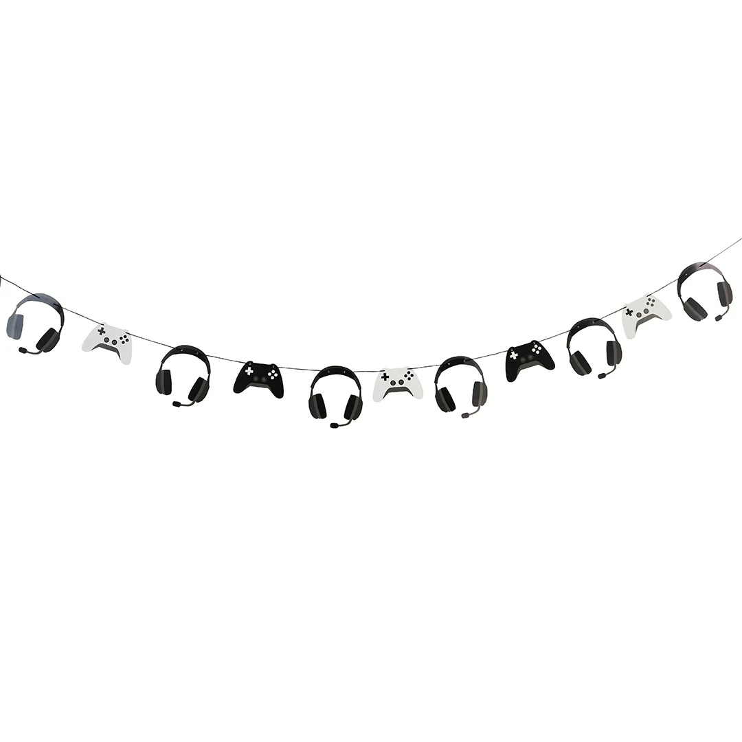 Ιδανική για κάθε gamer θεματική εκδήλωση, αυτή η εντυπωσιακή γιρλάντα περιλαμβάνει μοτίβα χειριστηρίων και ακουστικών.