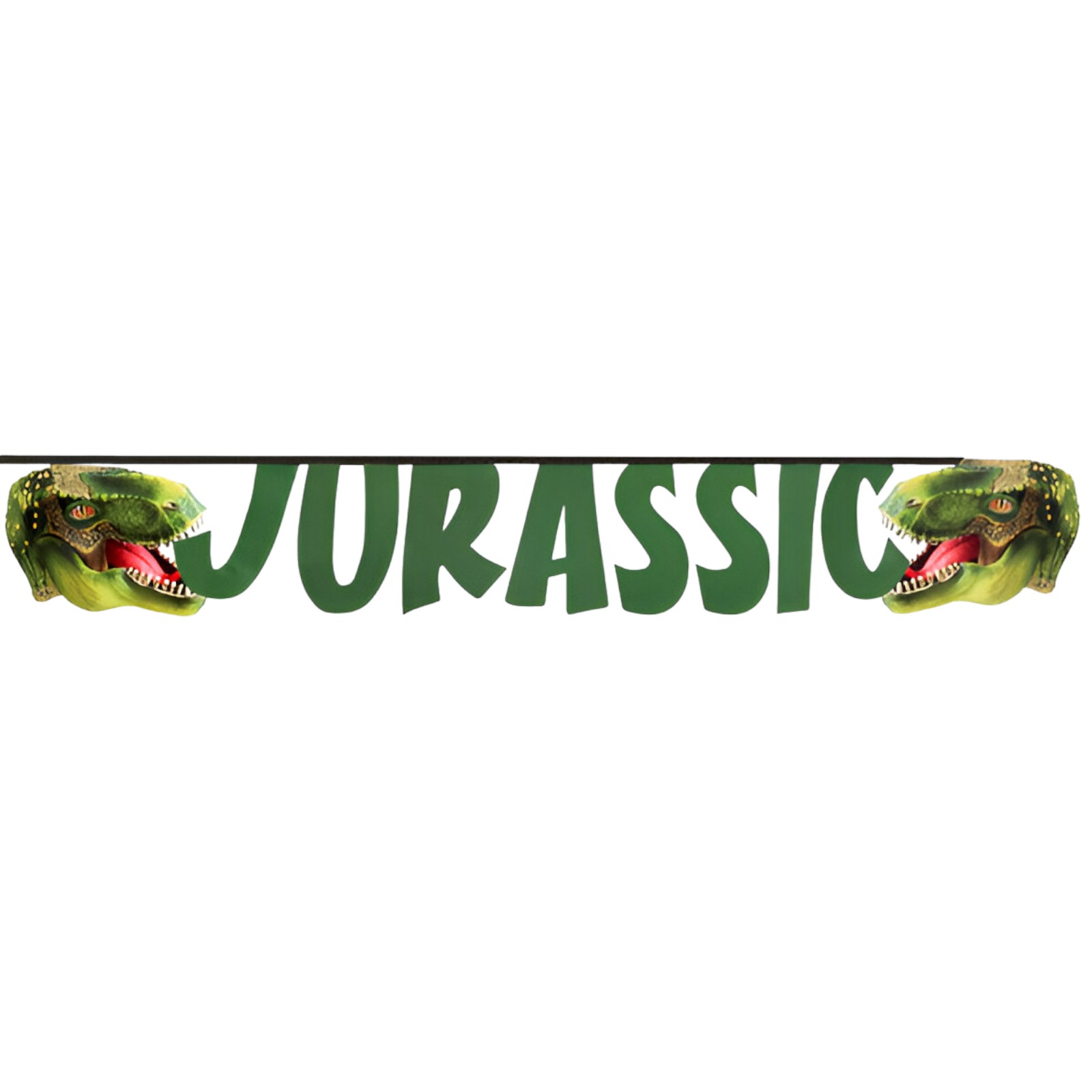 Δώστε ζωντάνια και θεματικό χαρακτήρα στο πάρτι σας με τη γιρλάντα Jurassic με δεινόσαυρους, που ξεχωρίζει για το εντυπωσιακό της σχέδιο και τα έντονα χρώματα. Τα γράμματα και οι φιγούρες δεινοσαύρων δημιουργούν μια δυναμική διακόσμηση που μεταφέρει μικρούς και μεγάλους στον συναρπαστικό προϊστορικό κόσμο.