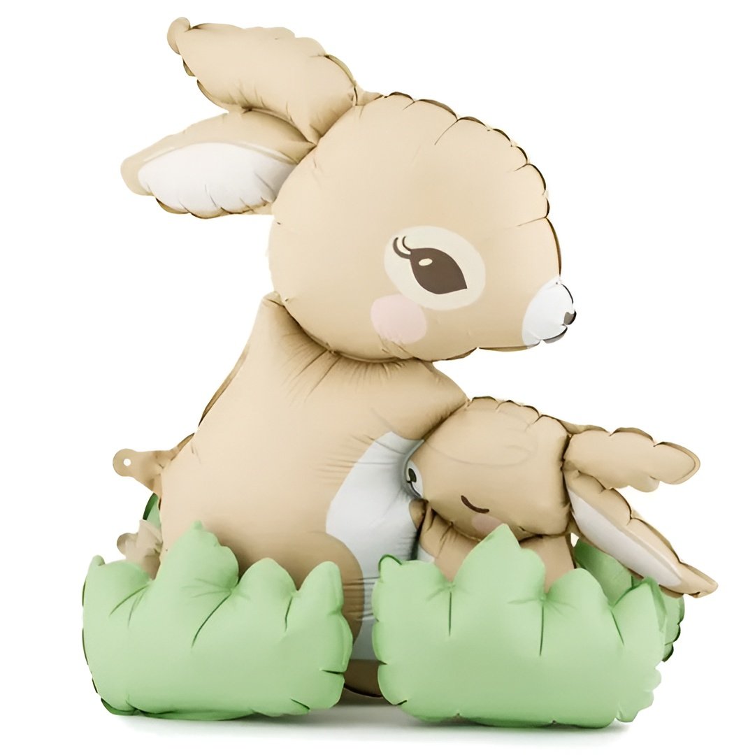 Μπαλόνι foil με κουνελάκια, την μαμά και το μωρό, στέκεται στο πάτωμα και φουσκώνεται αποκλειστικά με αέρα!