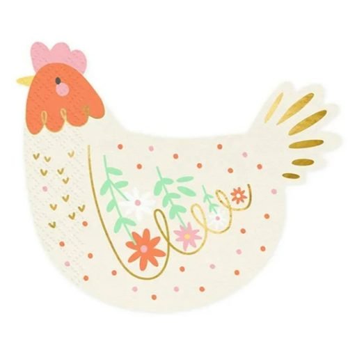 Οι χαρτοπετσέτες με σχέδιο χαριτωμένη κοτούλα είναι ιδανικές για να προσθέσετε ένα παιχνιδιάρικο και ανοιξιάτικο ύφος στη διακόσμηση του πασχαλινού ή παιδικού σας πάρτι. Με μοναδικό σχήμα που θυμίζει μικρή κούκλα κοτούλας και χρωματιστές λεπτομέρειες, φέρνουν χαμόγελα και εντυπωσιάζουν στο τραπέζι των καλεσμένων.