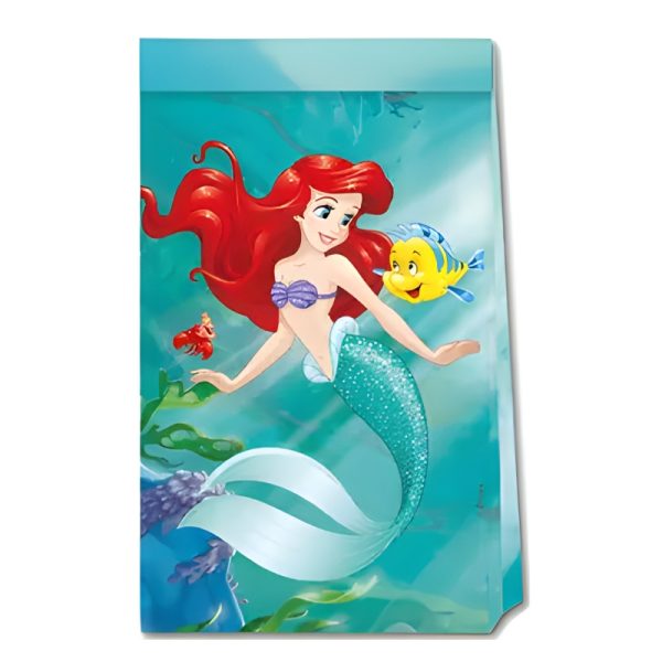 Ολοκληρώστε το πάρτι με στυλ με τα υπέροχα σακουλάκια δώρων Γοργόνα Ariel, διακοσμημένα με τη λαμπερή πριγκίπισσα της Disney.