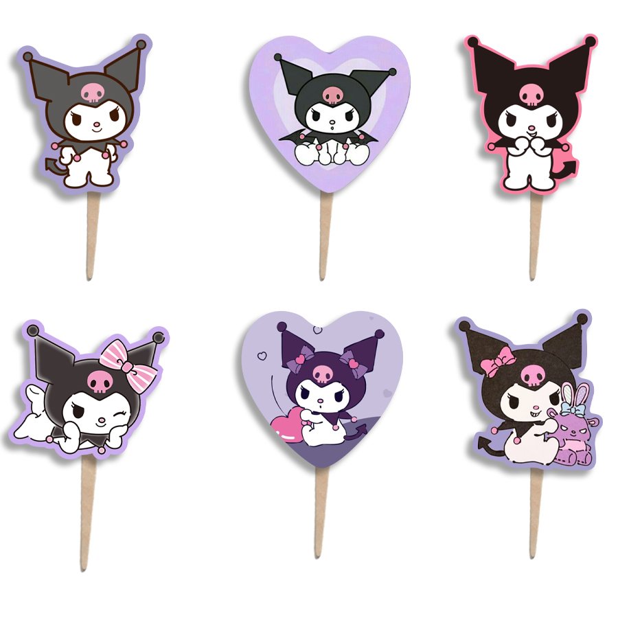 Το σετ περιλαμβάνει 6 διακοσμητικά picks με χαρτονένιες φιγούρες της αγαπημένης ηρωίδας Kuromi από τον κόσμο της Sanrio.