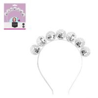 Στέκα μαλλιών με μπάλες disco, σε ασημί μεταλλική απόχρωση. Ιδανική για θεματικά πάρτι, εμφανίσεις με λάμψη και στυλιστικά παιχνίδια.