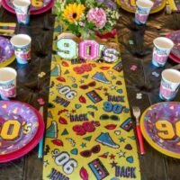 Runner τραπεζιού ’90s πολύχρωμος, με έντονα χρώματα. Ιδανικό για να προσθέσεις ρετρό ύφος στο τραπέζι σου σε θεματικά πάρτι.