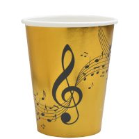 Ποτήρια σε χρυσό μεταλλικό φόντο με μαύρα μουσικά μοτίβα νότες, πεντάγραμμο. Ιδανικά για πάρτι με μουσική θεματολογία και κομψό στυλ.