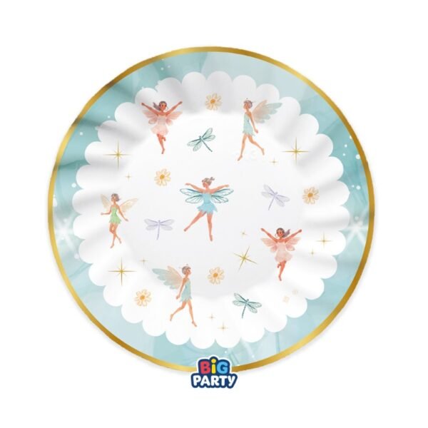 Χάρτινα πιάτα γλυκού “Νεράιδες”, ιδανικά για baby shower, πάρτι νεράιδας ή θεματικές γιορτές.