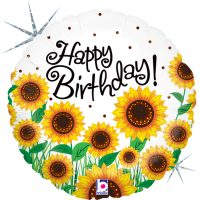Μπαλόνι Happy Birthday με ηλιοτρόπια και holographic εφέ για φωτεινή και χαρούμενη διακόσμηση.