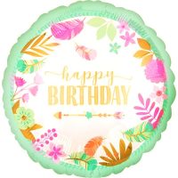 Μπαλόνι Happy Birthday με τροπικά φύλλα για καλοκαιρινή και χαρούμενη διακόσμηση πάρτι.