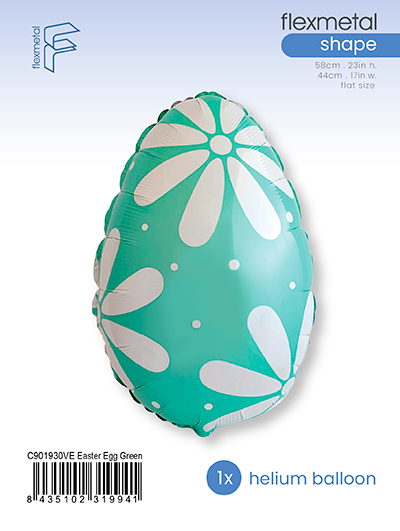 ο μπαλόνι foil σε σχήμα πασχαλινό αυγό με φόντο μέντα και λευκές μαργαρίτες είναι η ιδανική επιλογή για να ολοκληρώσετε τη θεματική διακόσμηση του πασχαλινού ή ανοιξιάτικου πάρτι σας. Με όμορφο pastel πράσινο χρώμα και παιχνιδιάρικο floral σχέδιο, δημιουργεί μια φρέσκια και χαρούμενη ατμόσφαιρα στο χώρο.