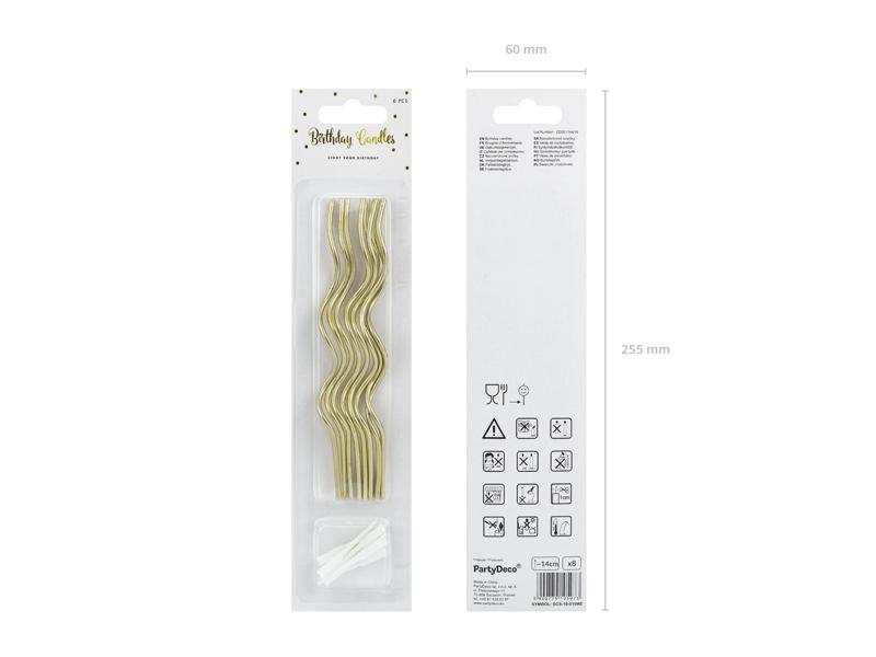 Κεράκια Τούρτας Ψηλά Χρυσά Curl – 8 τμχ.