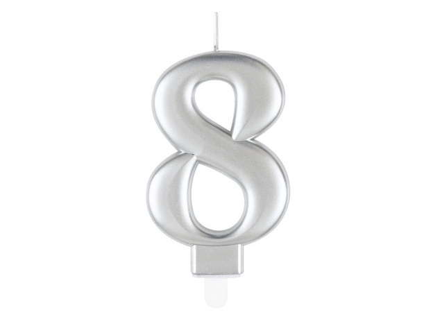 Κεράκι Νούμερο 8 Ασημί Μεταλλικό