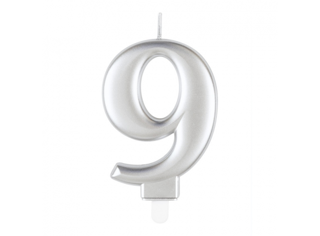Κεράκι Νούμερο 9 Ασημί Μεταλλικό