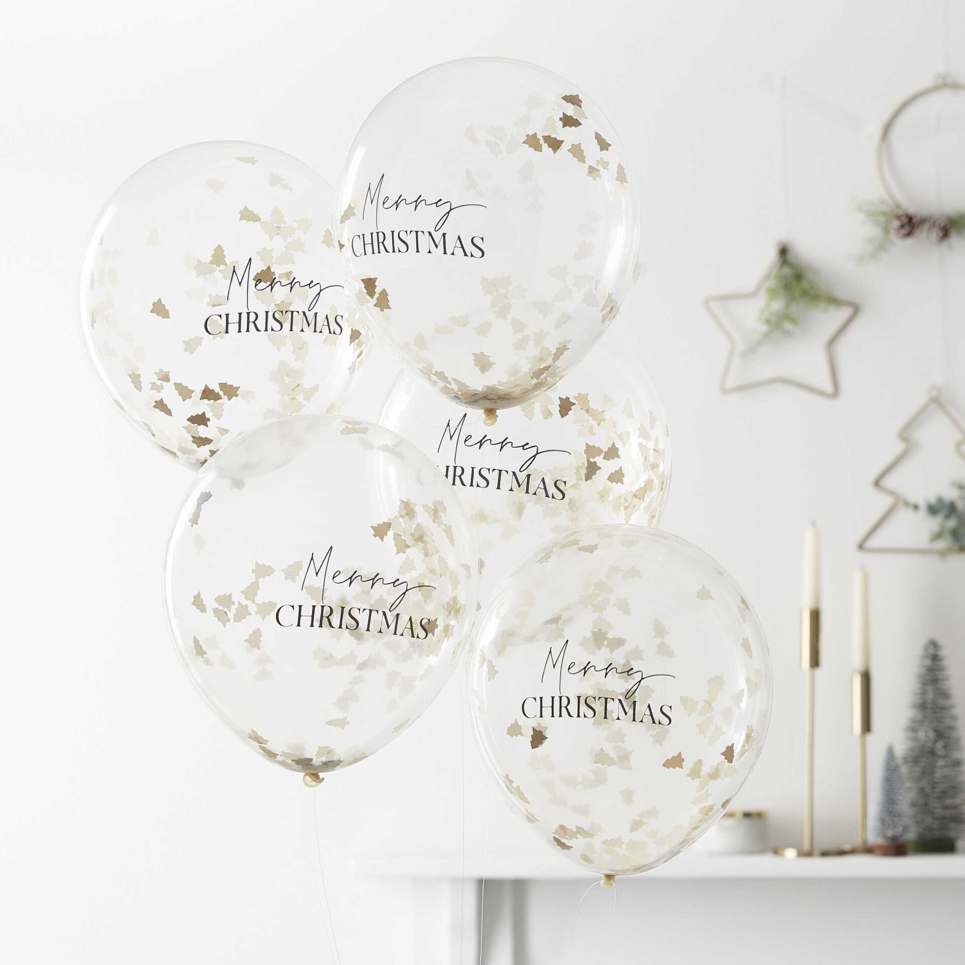 Πρόκειται για εορταστικά μπαλόνια λάτεξ διάφανα που περιέχουν κομφετί το αποτέλεσμα είναι εντυπωσιακό. Το μήνυμα Merry Christmas αναγράφεται καθαρά στο επάνω μέρος του μπαλονιού, προσθέτοντας άμεσα χριστουγεννιάτικη αίσθηση στον χώρο.