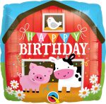 Μπαλόνι με σχέδιο φάρμα και τη φράση Happy Birthday τέλειο για πάρτι με θέμα ζωάκια ή αγρόκτημα.