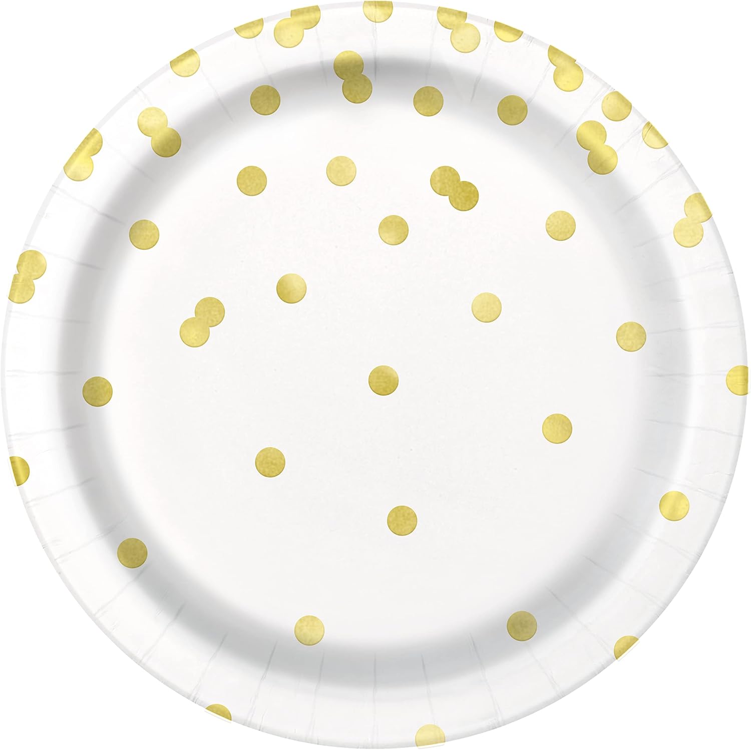 Μεταμόρφωσε το τραπέζι του πάρτι σου σε ένα λαμπερό σκηνικό με αυτά τα κομψά χάρτινα πιάτα με λευκό φόντο και χρυσές τυπωμένες κουκίδες τύπου confetti. Ιδανικά για γενέθλια, baby-shower, επετείους ή οποιοδήποτε event χρειάζεται «λάμψη» και στυλ.